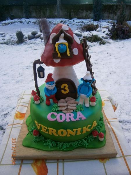 Tááák,a hotovo.Tento týždeň som rýchla,musela som všetky torty včera večer dokončiť a zo soboty popresúvať na dnes,lebo poobede idem konečne dokúpiť darčeky a zajtra robíme klobásky ,tak by som nemala už čas na torty.Nebolo bohvieaké zadanie čeveno biela v závese kvetov ,tak ja lenivá rýchle veľké kvety spravila,malá celá ružová tiež 3 veľké kvietky 😀 , farebná a aby boli pozapichované hviezdičky a nápis happy birthday,zasa ďalšia posteľ a šmolkov som ja vymýšľala. Tak som to rýchlo odflákla,.veď aj lenivosť je dar boží ,no nemám pravdu? 😀