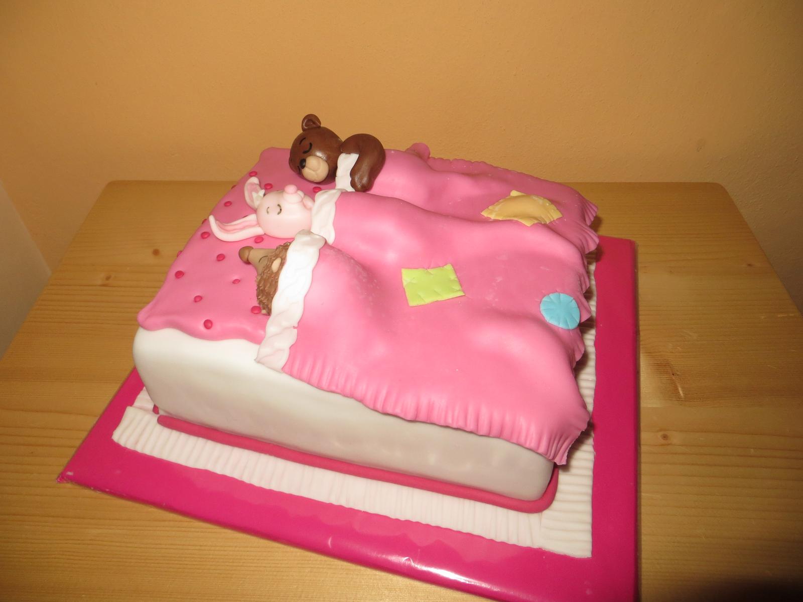 som akurát dorobila,tá ružová je na želanie,mal byť v posteli macko,zajko a ježko,čo už.........povodný obrázok z netu bol krajší,lebo bol iných farieb ako si vybrali.