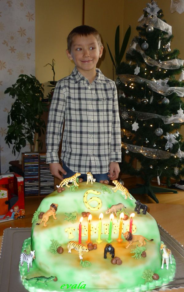 Jinak mé dorty jsou tyto - 1. fotka = první mnou vyrobený dort, 2. fotka = druhý mnou vyrobený dort a tak dále a tak dále. Potravinářské barvy gelové jsou použity až na tank a na rybník s rybou - ostatní jsou práškové barvy z Tety (a je to znát).
