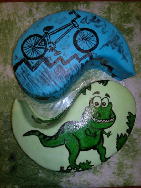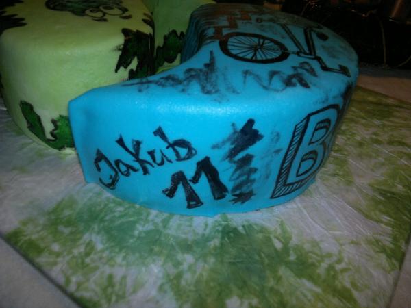 ahojte babulky dlho som tu nebola a bohuzial nestiham vas citat co ma troska mrzi ale pridam aspon moje vytvory jedna pre krstnych rodicov obaja mali 60 a druha zasa pre moje krsniatka ta bola strasna rychlovka som sa o den pomylila takze doobeda som to musela stihnut ale aspon som si skusila kreslit na torty kedze zadanie bola bicykel bmx a dinosaur a modelovat som nestihala 😀