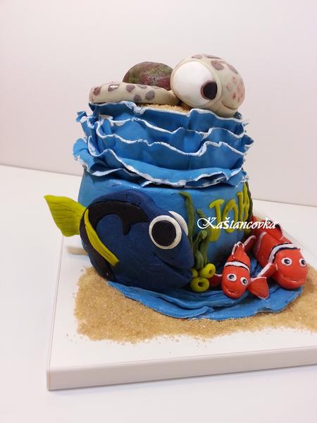 Ahoj holky, tak velmi poskromnu přidávám svůj Nemo dortík. Normálně jsem přemýšlela, zda ho sem mezi ty dokonalé dortíky vůbec dávat. Zkoušela jsem totiž velmi dietní verzi krému a chuťově ok, ale normálně se rozpouštěl, takže původně pěkně vyrovnaný dortík se pod tíhou dalšího patra výborně zbortil. A protože to byl malinkatý dortík jen pro nás doma, tak jsem ho "inteligentně" nevystužila no a takhle to dopadlo. Větší hromadu jsem nevytvořila snad ani na začátku dortování. No ale dcerka byla nadšená, takže svůj účel splnil...