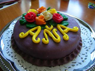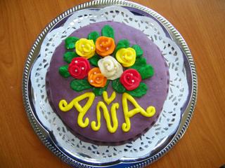 Holky, tak jsem já amatér zkusial svou druhou potahovanou a první s 3D ozdobami. Na vás ale nemám. Ta barva potahovky je světle fialková, jen na foťáku to zkresluje. Svíčka se 6 ještě chybí. 😉