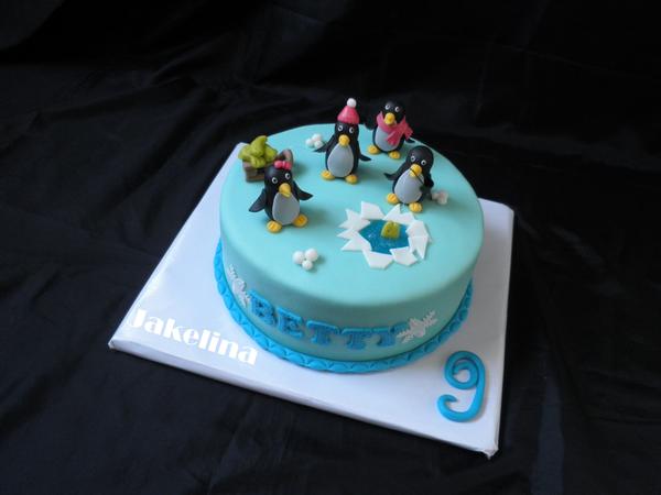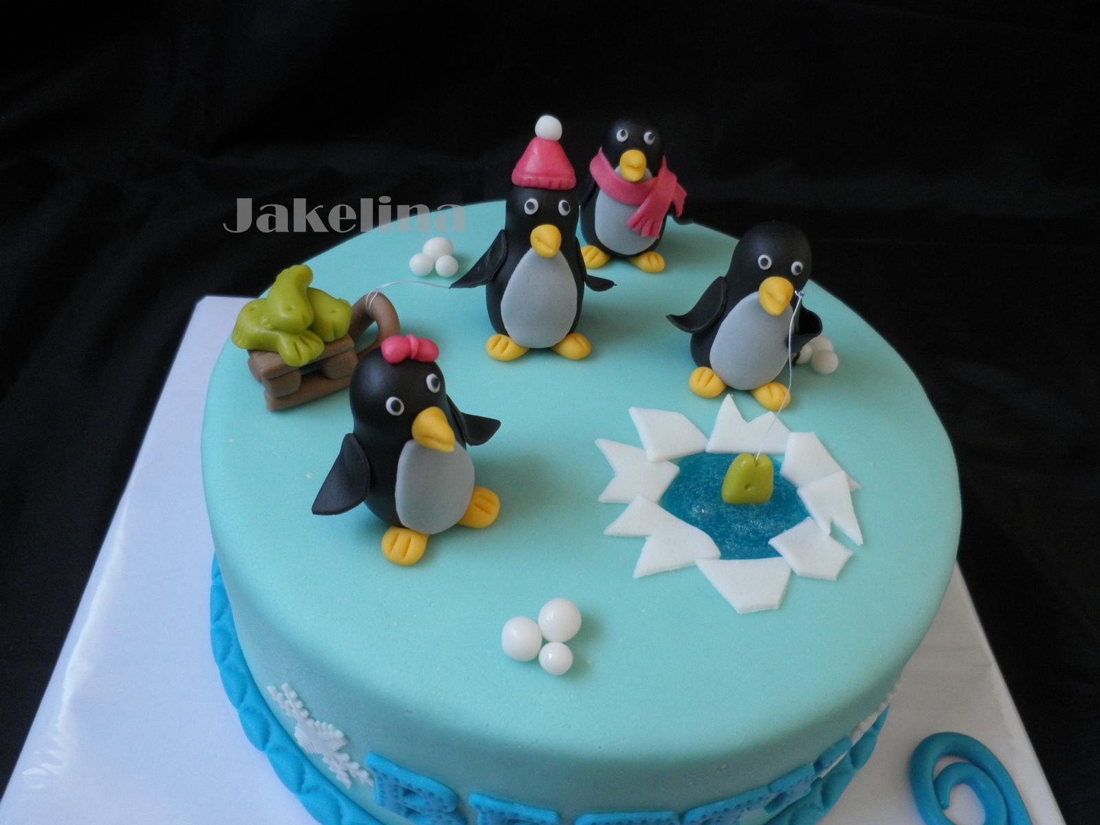 A ten s tučňáky to je bez komentáře, nejdřív tam mělo být i iglú, pak by to bylo moc drahé a prý stačí dvě kila dort, já už měla postavičky, tak jsem kývla na menší dort a v průměru 20 cm ve formě má stejně skoro 3 kila. Tak na tom jedině prodělám a krém z mascarpone, no víkend jak vyšitý. 😝