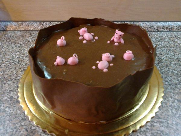 Ku všetkým profesionálnym tortám pridávam ja jednu amatérsku....našim k výročiu sobáša čo majú dnes 🙂 keďže ich manželstvo nie je najukážkovejšie, zvolila som preto miesto srdiečok prasiatko pre šťastie 😀 korpus mramorák, plnka I. pistáciová a plnka II. z rumba čokoládok. Mama skoro odpadla, že ja som nezabudla na ich výročie sobáša 😀 😀 😀