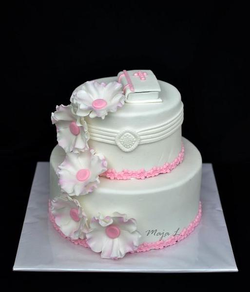 caute kocky, dobojovane... 🙂 cely tyzden s nechodiacim 20kilovym dietatom 😝 ruky mam vytahane az po zem 😀 inak ak ste este nerobili rovnake torty v jeden den, tak je to riadna psychiatria, tie dve rovnake sady som robila vcera a uz mi zasibavalo 😅 trojposchodka bola pre svokru, sli na svadbu, reakcie zatial neboli ziadne 😕 trochu ma prekvapili tie pokrove karty, boli na fondane, tak som myslela ze ked to necham volne susit na vzduchu ze stvrdnu a budu take tenucke, ale oni uplne zmakli ako handra a musela som ich podliepat smartom...takisto nova skusenost s tym sampusom, vobec to nie je vystuzene, iba vydlabana diera a pekne to drzi 😉 havinkovu som uz robila taku istu, len to mal byt teraz cavalier, tak som daco nasla na nete, dufam ze to je on 😎