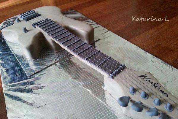 @nika1985 ja som robila na narodky jedného hudobníka, bola v mierke podľa originálu jeho gitary, Dlhá bola 90cm a vážila niečo cez 8kg. Bol to mramorák s pribinákom a jahodami. Táto bola v celku a bola robená v zime. Druhú som robila na dve časti a spojila pred odovydaním na spoločnej veľkej podložke.