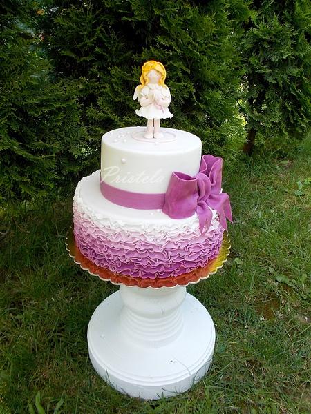 @govinda dakujeem 😅 to zdobenie, to len pas hmoty nalepis a bud kosticou alebo prstami povykrucas hore ako chces,to riasenie na fialovej , zas boli 2cm siroke dlhe pasy hmot prelozene na polovicu a tam kde bolo to prelozenie som to pritlacala a riasila kosticou na tortu/lepila som vodou /