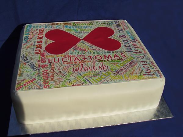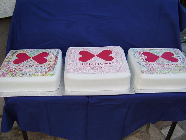 Svadobné s potlačeným fondánom boli presne podľa návrhu ženícha a nevesty, úplne všetko (výzdoba, pozvánky, doplnky,...) boli v tomto štýle, tak museli byť aj torty 😀 .