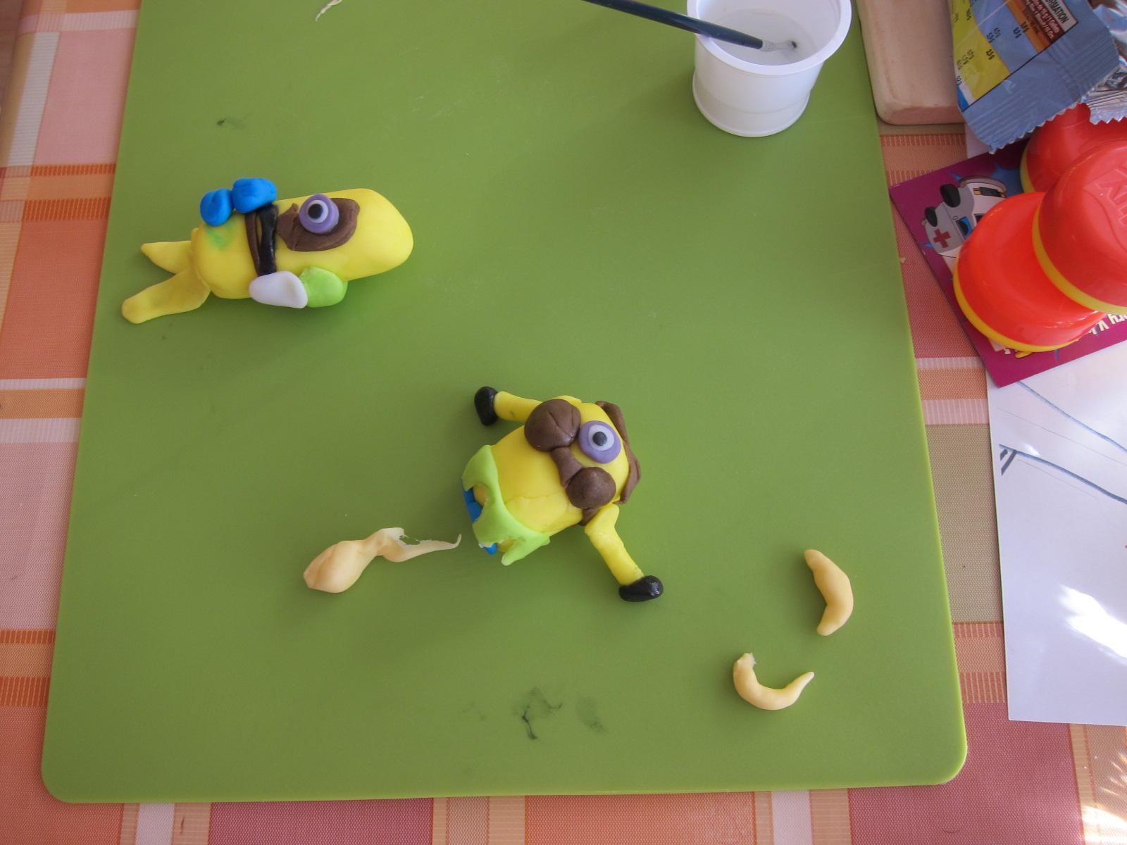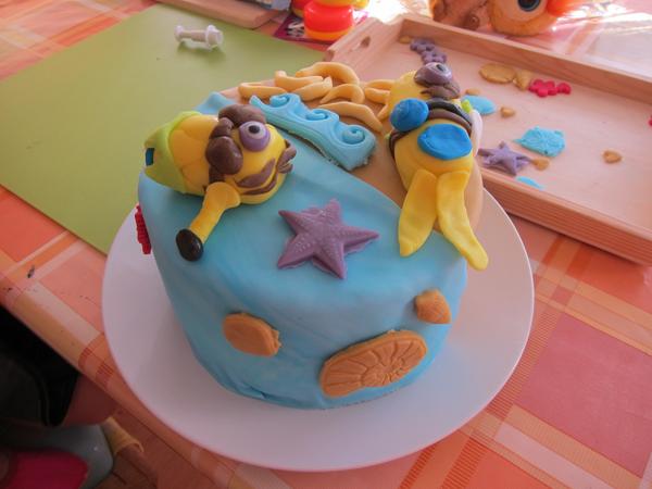 @jakelina ano oni robili... karin chcela presne taku ako som robila kamoske pre syna na dnes s plazovym mimonom, tak si nachystali muslicky zo silikonky, kym som naplnila a omaslovala torticku a potom som pri nich sedela a hovorila postup ako sa co robi...pripadne som zobrala kusok hmoty, nech same vidia ako na to a znova som zosulala naspat, nech sa trapia 😝 karin robila toho vo vode a romanka toho na piesku-ona mu silou mocou chcela urobit zlte nohy ku koncu, tak z nachystanych ruk urobila take plutvy 😀 😅 a karin tak isto aj potahovala sama....ja som len pomohla vyvalkat, lebo sa s tym velmi trapila 🙂