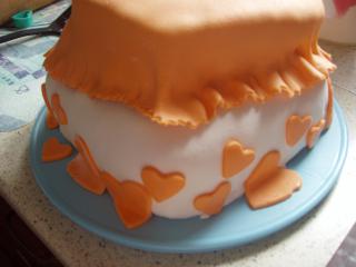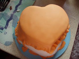 mne sa chladi torta zadok mojmu muzovi k narodkam 😀 zajtra ju potiahnem som zvedava co nan povie 😀 mozno si bude mysliet,ze to budu prsia ked este neni dozdobena