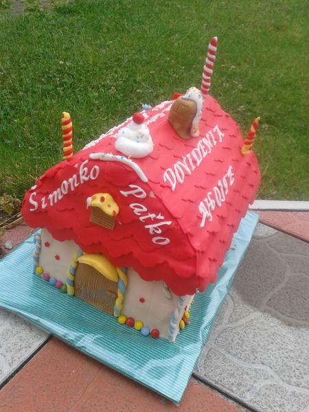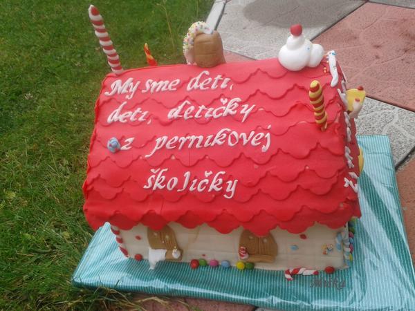 Ahojte tak ja mám hrozný víkend za sebou @maya30 tak ja ťa obdivujem ako ty tolko torty stíhaš na víkend. Mňe začínala prvá na štvrtok a poslednú som odovzdávala dnes. Ale mala som dosť. A ešte k tomu deti mali akciu z angličtiny a potom opekačku zo škôlky .Takže som mala dosť. a ešte v stredu som od rána vypekala a poobede som rozrezala jeden korpus, Ktorý som piekla ešte v utorok večer a zistila som ,že je v strede suroví. tak som začala rozrezávať ostatné a všetky boli v strede surové.Tak volám mužovi čo teraz bol práve v meste tak mi kúpil novú rúru,ale len takú menšiu mali výpredaj tak vzal aspoň takú.takže som piekla odznova a 4 korpusy skončili v koši. Jedine vrch sa dal požiť a ostané nič. Takže veselo bolo. 😠 takže tortičky. Tá chalúpka bola synovi do škôlky,volajú ju perniková chalúpka. Hoci tak vôbec nevyzerá,ale vnútro majú tak pekne farebne riešené.Ale priznám sa je odfláknutá,lebo som ju robila popri tých nedopečených korpusoch tak ma chuť robiť ju hned prešla.