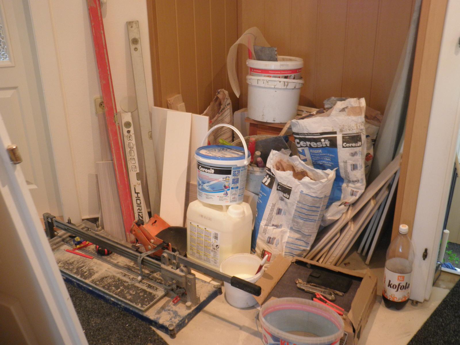 @brunila ani nemluv, schválně ti pošlu fotku jak to vypadá u mě v koupelně a na chodbě v prvním patře, přes kterou musím projít do každého pokoje kam se potřebuji dostat. A to tam už neleží řezačka na dlažbu napříč a kýble s tmelem. 😀 😀 😝 😝 Vyfotila jsem to večer, když už to bylo trochu srovnané 😀 😝