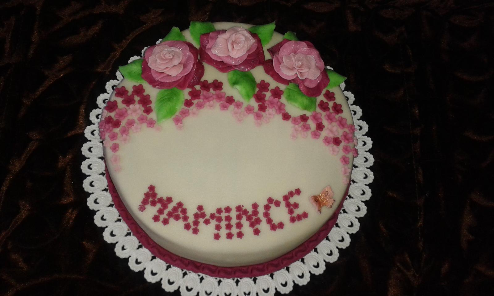 Po dlouhe dobe jeden pro moji mamku, potah i ozdoby pravy marcipan, v tomto teple nic moc, jinak mramorak, tmavy mascarpone krem a domaci rybizovy dzem.