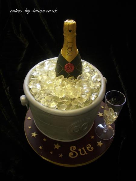 Ahojte dievčatá, potrebovala by som poradiť. Budem robiť pre môjho otca dve torty na dve oslavy 60-tky. Jedna by mala vyzerať nejako takto. Otázka k vedierku, neviete mi poradiť akú farbu alebo sprej kúpiť, na tú striebrnú alebo zlatistú metalickú farbu? Kocky ľadu môžem urobiť zo želatiny, ktorú nalajem do formy na ľad? A ešte jedna otázka, neviem, či urobiť fľašu tortovú alebo dať naozajstnú. Nerobili ste niektorá? Ak by som dala ozajstné šampanské, ako ho do tej torty dať? Treba to potom pod ňou nejako vystúžiť, že?