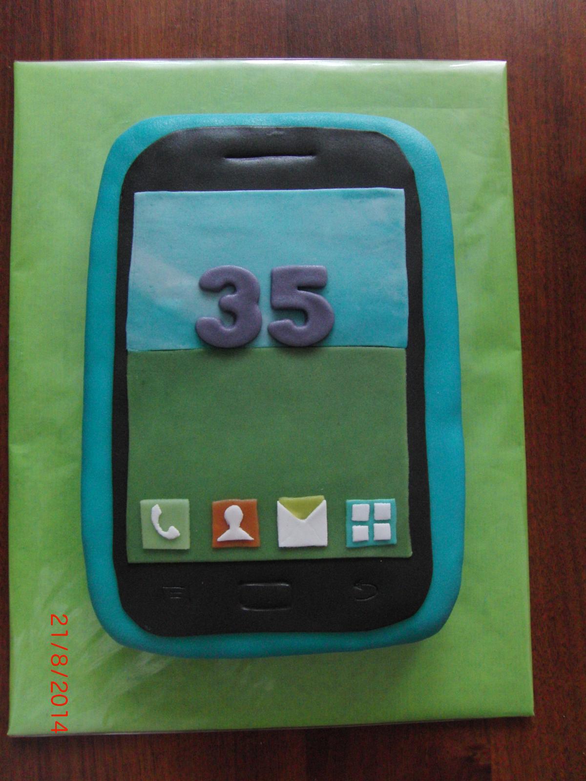 Tak přidávám další můj pokus. Dělala jsem ho v rychlosti, tak je to trochu křivé, ale už se mi chtělo hrozně spát. Pro manžu k narozkám, přál si nový mobil, tak ho má ve skutečnosti i jako dort. 😀