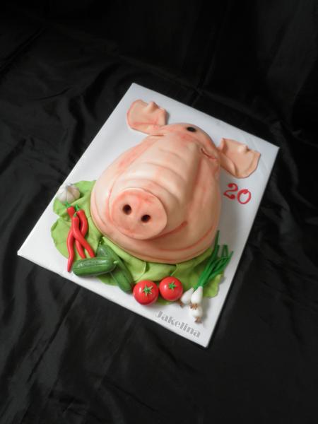 Holky moje taková škaredá dorta, to mě vůbec nebavilo dělat. Ale je to pro synovce, touží po tom dělat řezníka. Letos maturoval a od září nastupuje na řeznické učiliště. Tak ta hlava mu udělá radost. Já to teda nemám ráda, zabíjačky, ale on je na to fakt šikovný, dokonce už minulý rok zvládnul celou zabíjačku sám i s zabitím prasete tou řeznickou pistolí. Udělal všechny výrobky a celé ho rozporcoval. Já se na to ani nemůžu dívat, natož to prase chudáka zabít. 😝