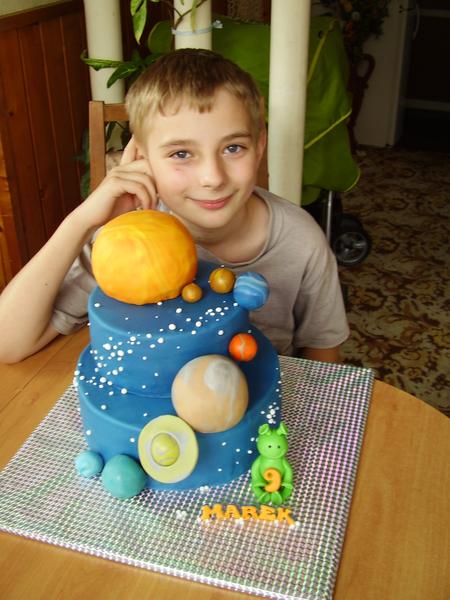 Ďakujem dievčence za posledné páčitká a ešte pridám poslednú tortu z mojej "rodičovskej dovolenky" pre nášho už 9.ročného chlapa (samozrejme aj s oslávencom). Ako inak zas vesmírna téma, tak tentokrát som to zobrala od základu, celá slnečná sústava 😀 . Krivé planéty radšej prosím prehliadnite, už som mlela z posledného 😀 😀 . No a ráno už do práce ☹ .