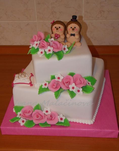 ahojte, tento tyzden ste mali asi vsetky narocny, aspon u nas je vela svadieb asi kvoli predlzenemu vikendu...ale drzala som sa statocne a vzala objednavku len od jednej pani, davam sem 2, tretia torta bola s jedlym obrazkom obcianskeho preukazu, tak kvoli udajom nedam, aj tak bola len jednoducha. Baby ak uvazujete nad kupou tejto krajky s ruzami tak si to rozmyslite, to je priam umenie dostat ju von celu 😝 Ruza je hruba, takze by mala dlho schnut, lenze dovtedy je ta sietka davno presusena, zozadu na torte je sietka skoro cela vymrvena, tam som to musela maskovat...no neviem ci este najdem odvahu pouzit ju.