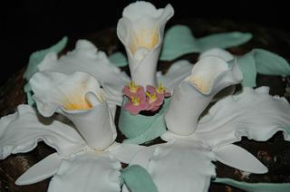 Teraz len pridam pokus o orchidee, s novou floral sadou, toto je dokaz, ze dobre nastroje a navod nie su vsetko, ked sa mi ako tak podarilo urobit okvetne listky, tak rano pri manipulacii sa mi lamali, asi som nemala dobre spravenu hmotu, robila som z tych rubino cukrikov, nebolo to prvykrat, co sa mi ta hmota lamala, aj som pridavala cukriky, ale nestacilo a pritom ani vela cukru tam nebolo, davala som, este pred cukrom, bieliaci prasok, mozno to bolo aj tym, ze som ho tam dala vela? Neviem, no ale uz to ako tak je, a tu je ten moj zlepeny vytvor, ktory drzi pokope len pre to, ze som ich uprosila..🙂