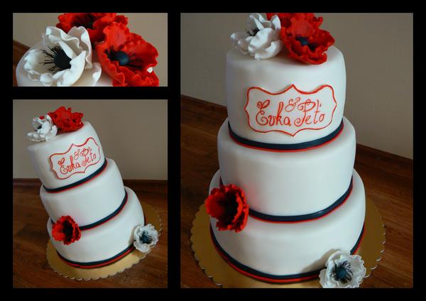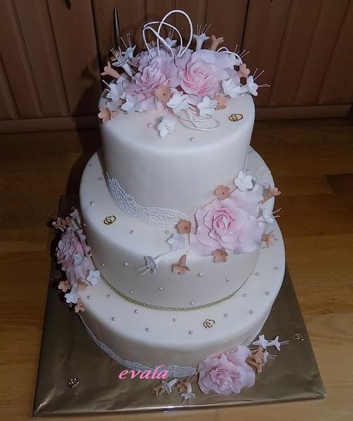 Inak, prvy krat som robila krajku a Ganache som skusala na tu svadobnu (horne dve poschodia, potom dosla cokolada.... 😀 😀 😀, co uz, aj tak sa mi to nedarilo urovnat ani s ganache ) No a na krajku som si zarobila 50 g prasku a piekla som hodinu!!!!! Nabuduce budem vediet, hehe... Inac sa mi s tym super robilo, asi stastie zaciatocnika.... 😝