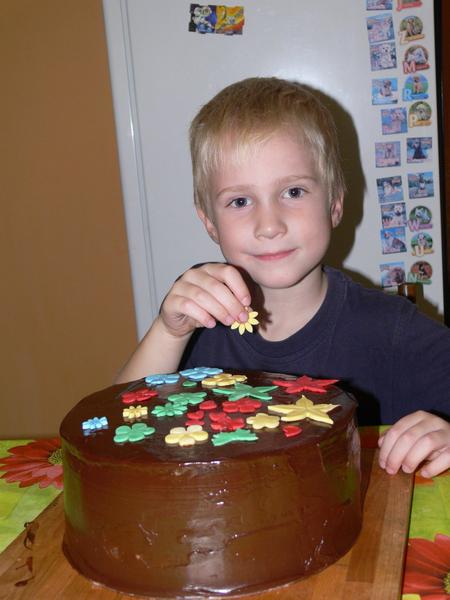 tak tu je niečo odo mňa, za posledné 2 týždne, so 6-tkou je bezlepková, tie autá sú totálna katastrofa, ale lepšie to nešlo, hokejová- tú som najprv fotila, až tak som zistila, že ešte chýbajú v kruhoch bodky, tak rýchlo dorobiť, nech to vyzerá ako má, no a posledná foto, môj malý veľký pomocník pri zdobení torty pre dedka.zdobil sám , 1/3 kvetiniek síce zjedol, pretože sa mu ,,nepodarili "