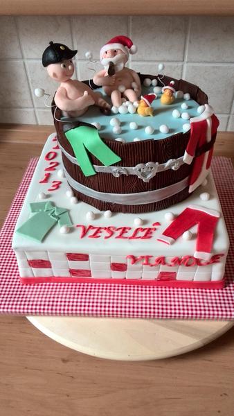 pridávam ešte jednu ,podla predlohy a nič tam nechcela pani meniť ,som tam chcela zakomponovať nejak mikulašsku temu no neuspešne 🙂 nechapem ale na foto vyzera torta ako fest kriva 😀 😀 a pri tom je vodovahou robena a krasne rovna 😀 😀
