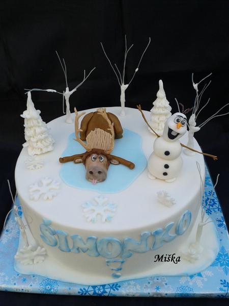 skoro stale vas tu obdivujem a hlavne vase torticky 😉 . Kedze ja mam dcerku narodenu tesne pred Vianocami, tak mam problem s tortickami - nikto nechce piect tortu pred Vianocami, vsetci mi hovoria, ze pecu kolaciky a kolace na Vianoce...tak som bola nutena zacat sama, hlavne teda kvoli dcerke. Nie som taka profesionalka ako vy tu, ale snazim sa, no a toto je tohtorocny vysledok 🙂 Torta na zelanie nasej malej "Frozen"