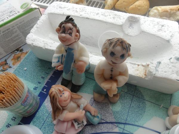 Ahoj Mozem sa k vam pridat? Velmi obdivujem vase nadherne dielka a rozhodla som sa ze aj ja s abudem ucit. pozrela som vela videi ohladne modelovanie postaviciek aj potahovania torty. Tato torta bola na zelanie pre ludi, ktori pomahaju druhym. Mala byt urobena podla konkretnej kbizky. Islo o Timovu pracu. teta robila korpusy, mamina krem, brat potahoval - mimochodom je to jeho druha potahovana torta v zivote a ja som namiesala odtiene a modelovala. Budeme s bratom robit viacej torticiek a postupne sa zlepsovat a tymyto tortami chceme robit radost nasim drahym priatelom a aj tym, ktori potrebuju pomoc aby mali take male potesenie. Pridavam aj bratovu prvu potahovanu tortu v zivote. Ja som modelovala figurky a bolo to pre rodinku, ktora ma cast domu je ako vystrihnuta z rozpravky Flinstonovci. Postavicky som robila podla roznych postupov na youtube.