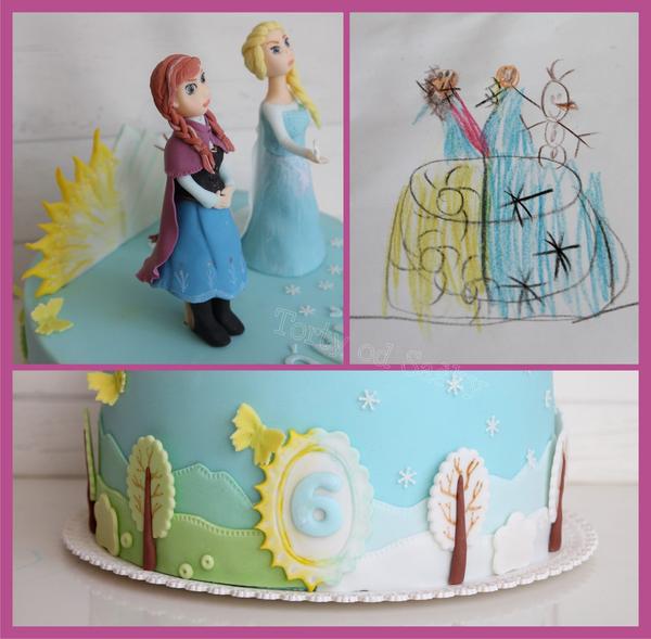 inak velmi som sa tesila na tu modelovanu Frozen, bola pre moju neterku, sama si nakreslila, ako ma vyzerat, ze Anna bude na letnej slnieckovej casti, Elsa s Olafom na zimnej s vlockami 🙂