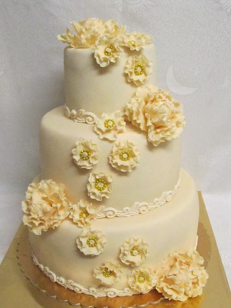 Babky prosím ak máte trošku čas, mrknite prosím na túto foto, robím tortu na želanie podľa nej, ale len vrchné 3 poschodia. Čo myslíte tie lupienky čo sú na druhom poschodí z hora na boku torty polepené sú biele či jemne krémové? Poťah som dala od hora dolu na tie tri poschodia hore biely, stred jemne krémový a spodok tmavšie krémový, len sa neviem rozhodnúť aké tie lupienky, je to na tej fotke dosť zle viditeľné... ďakujem každej ktorá má čas v tomto piatočnom frmole za názor 😀