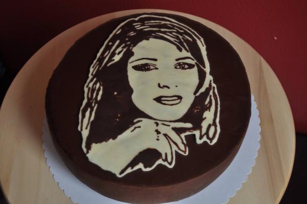 @abriela ta zenska som ja 😀 😉. To bolo pre mojho draheho na narodky. Je to malovane cokoladou. Som to chcela vyskusat a co lepsie som mu tam mohla nakreslit :-P? 😉 😀😀 😀. A ta radost ked do nej zarezal 😀