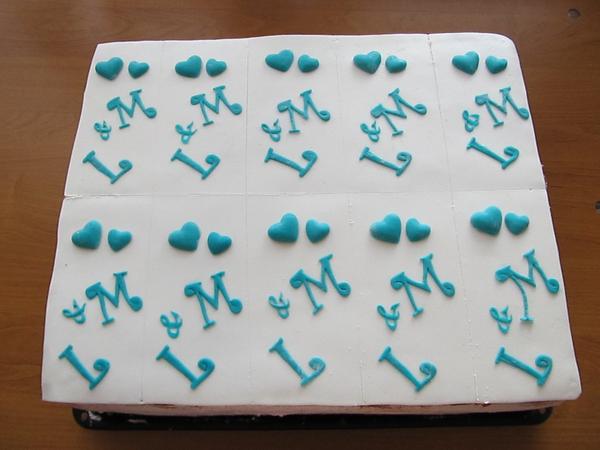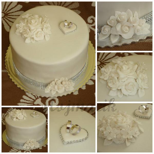 moja prva svadobna, teda pokus o svadobku..nastastie bude hned rozkrajana do vysluzky...skoro ma piclo, ten hic v kuchyni cez den 30,4 v noci 29,8...moju 20 rocnu chladnicku som vypeckovala na maximum...a tak sa vzadu urobila taka namraza.sniezik....tak preco by to ti moji lupaci nezacali lupat...no a samozrejme,ze oprskali aj vrch torty,takze akoby som to ofrkala vodou a samo,ze su tam kráteriky...asi ich vydedim 🙂...na foto je este v poriadku