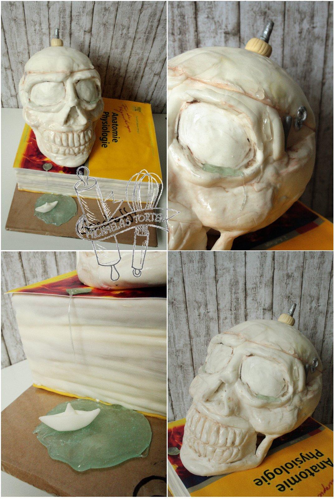 sladke zienky pridavam vam sem moju tortuchu ☹ 😅 celkom sklamana som z nej... take zadanie, ze... 🙄 mala som na vyber, ze cela kostra alebo len lebka... hovorim si, ze som ja z dediny a velice skromna 😅 ze vystacim si len s hlavou 😀 co nesmelo chybat na torte bolo plac a pot 😅 😀 😀 😀 v tom momente mi preblesklo hlavou 100 roznych vyhovoriek, ze preco tu tortu nemozem vziat 😅 vsak ako mam do torty zakombinovat plac a pot??? 😅 no nakoniec som to vzala a zapotila sa pri tom jedine ja a skoro ani plac nechybal 🙄 😀 torta bola pre kocku, ktora ukoncila studium... mala byt pre viacej ludi... tak som rozmyslala, ze robit mega lebku v tomto teple nebudem... ze zakombinujem radsej nieco z jej studia... kocka musela suhlasit s mojim napadom 😀 nic ine jej neostavalo 😀 den pred odovzdavanim mi pise, ze ma jedno obrovske prianie... mala som uz v sprave rozpisane: tak napis jeziskovi 😅 no nakoniec som to vymazala 😀 😀 😀 ze budem ja radsej slusna a zo zvedavosti som sa spytala na tu urcite buducu poziadavku... a to bolo: more placu... 😀 😀 😀 nie iba plac, ktory som nevedela ako zakombinovat do torty ale rovno more placu 😀 akoze vazne, chcel uz niekto po vas na torte more placu??? 😀 😀 😀 po mne uz ano 😎 😀 😀 uplne zufalstvo... tak som jej tam svacla roztopene cukriky a malu lodku, ktora tam mala svoju symboliku 😀 uplne som bola nadsena z toho skveleho napadu 😎 😀 cisto jasne more placu 😉