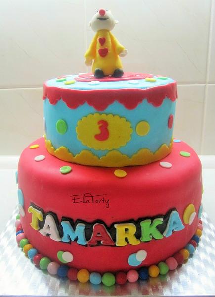 Pozdravujem vás dievčence . ja čoraz horšie znášam toto počasie, dúfam, že to už skoro skončí a bude sa dať zase normálne robiť . Pridávam moju tortičku , fotila som ju narýchlo o 22hod večer , ked si prišli pre ňu , tak to aj tak vyzerá a ten šašo má hlavu akosi dozadu , už sa s tým nedalo nič robiť , no čo už .