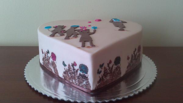 babulky idem sa pochvalit s mojou prvou takouto valkou tortou 🙂 kedze nepeciem este dlho tak som mala velky strach dufam ze zajtra prezije cestu na svadobny stol 🙂))