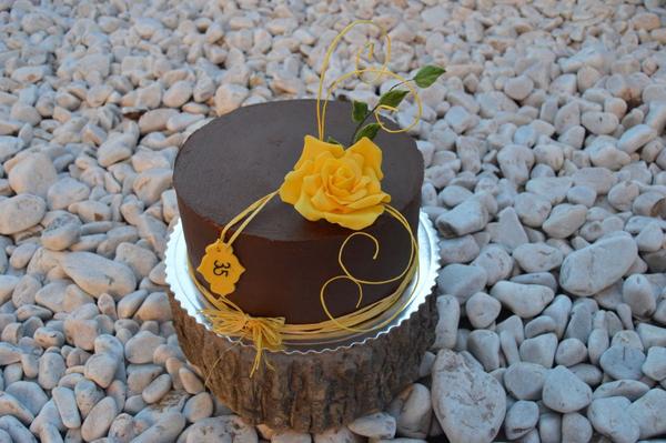 Ahojte,pridávam 4 kúsky.A je to tu ,porušený sľub sama sebe,že nepečiem viac ako 3 torty ☹ .Včera večer o 21 hod.prišiel známy,že súrne potrebuje tortu. Nechcela som ani za ten svet zobrať,veď som ešte nemala dokončené torty na dnes .neznášam to. Vyhovárala som sa ,že nemám ani dosť poťahovky,tak nakoniec som privolila ,že čokoládovú s jedným jediným kvetom.