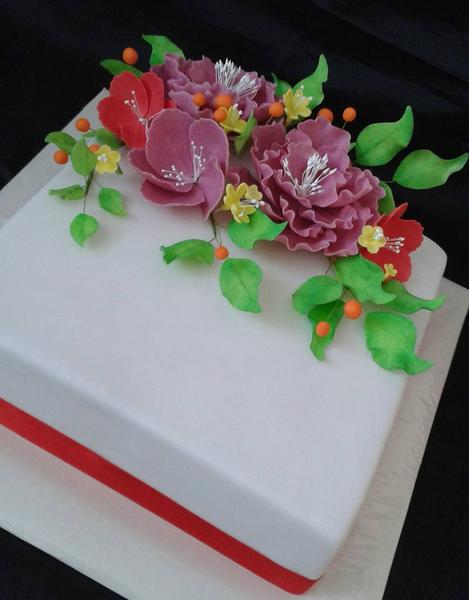 @dush k tomu striebornému cukru : ja som si tento víkend spravila doma vlastný (ani som nevedela, že to ide 😀 ) a veeeeeľmi jednoducho. Môžeš pozrieť fotku mojej torty na predchádzajúcej strane navrchu. Na dvoch kvietkoch mám tiež strieborný cukor. Len som si zmiešala obyčajný kryštálový cukor (jediná chyba - mala som len s malými kryštálikmi) s perleťovou práškovou striebornou farbou a ostalo to krásne zafarbené. Skús doma vyskúšať a nemusíš kupovať hotový 🙂 .