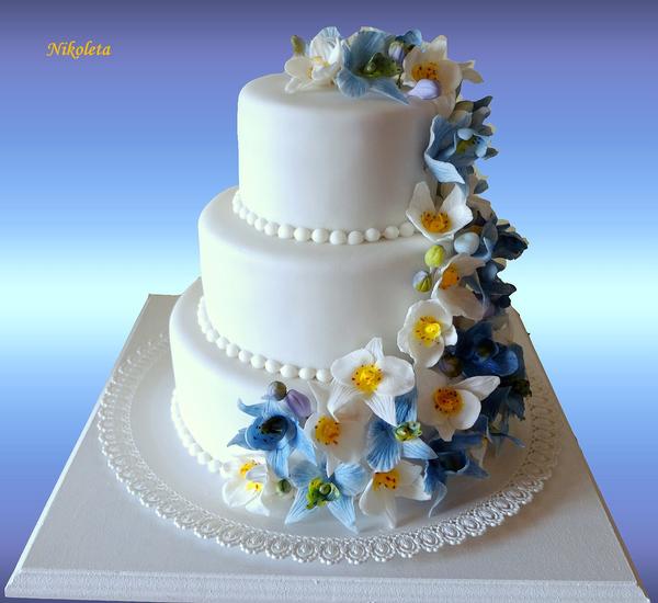 @elamaslakova ahoj 🙂 tu dvojposchodovu myslis? 😕 😅 😀 je potiahnuta smartflexom 🙂 ten som si zafarbila na cierno a pridavala donho nezafarbeny Smart kym nevznikla seda Farba ... Potom som potiahnutu tortu "zaspinila" praskovym cukrom... Aby to vyzeralo Ako tabula 😀 Snaha teda bola 😀
