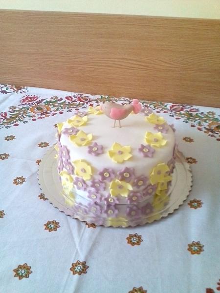 S tou detskou vobec nie som stotoznena, ale oslavenkyna si zelala takuto.."kvety fialove a zlte, vela vela kvietkov a vtacik hnedo-ruzovy" znelo zadanie..ale hlavne, ze sa pacila 🙂