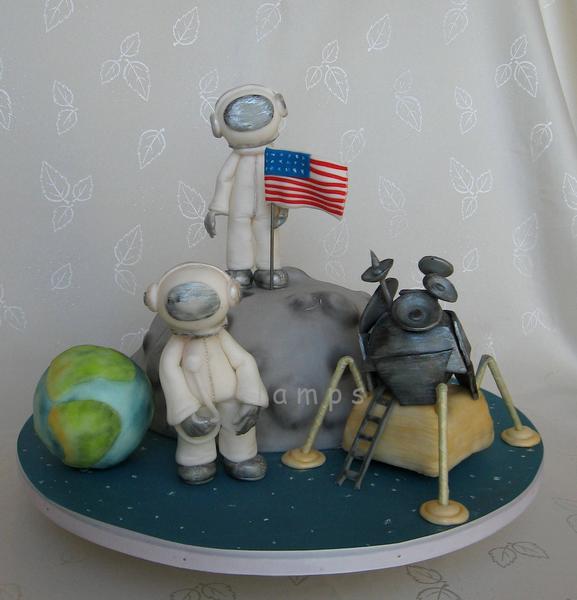 dievčence pridávam tortušu tohto týždňa, bola to skúška nervov a trpezlivosti 😀. Malý oslávenec mal šťastie, že ho strááááášne ľúúúbim, inak by som tortu asi odmietla. Keď si jeho maminka zajednávala tortu, chcela tortu s tématikou vesmíru, som sa potešila, že veď to sú také pekné torty. Potom mi volala a poslala obrázok s požiadavkami malého oslávenca - na torte MUSÍ byť lunárny modul 😀 kozmonauti, Zem a americká zástava. Ten lunárny modul ma dostal 😀 😀 😀 😀 😀 😀. Ja len dúfam, že malý nebude sklamaný a že aspoň trochu bude torta spĺňať jeho očakávania. Inak malý má 7 rokov, už teraz sa bojím, čo bude chcieť na tortu budúci rok.