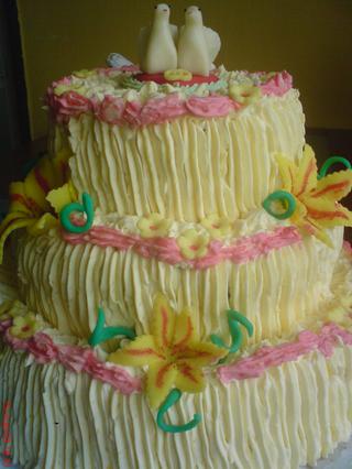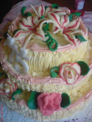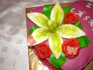Baby môže to byť lalia?Sa mi pokazil korpus tak sme mali povinne tortu.tak som skúšala niečo čo som ešte nerobila.Nemala som piestiky ani vykrajovatka.Tak som len improvizovala.Neviem aký je to kvet.Odborníčky dajte tip čo to je 😀 😀 😀 😀 @alionuska ani som netušila,že som zas kopírovala tvoju tortu.Náhodou som si prezerala album a zistila som,že si ju robila Ty.Tak ma ohodnoť.Aj ked viem,že tvoja bola krajšia. 😉