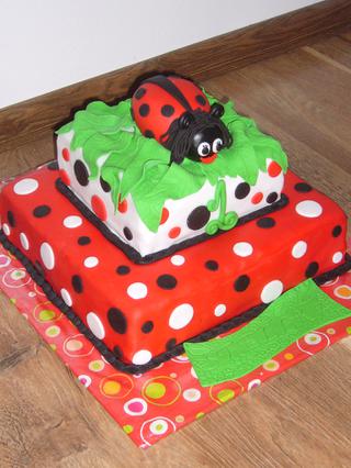 @mizulienka - ja farbim iba hmoty,nefarbim po povrchu a cela torta je z PDT (pasta dama top), lienku som ale robila z puncoviny, sa mi nepacilo cesto, co som upiekla 🙂 a hlavicka je iba hmota sa mi zda... boooze - ja si normalne nepamatam, isla som spat o pol druhej, ked som ju robila 😀 a inak - bola pre esmemiu od nas z temy 🙂