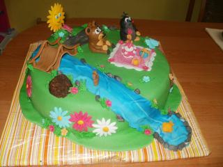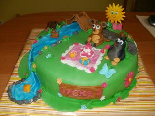 dělala jsem mramorový korpus, nedařilo se mi vyšlehat sníh dotuha a zabarvila jsem kakaem omylem celé těsto, tak je jen kakaový a ne mramorový, naštěstí se upekl dobře, krém jsem dělala nutelový, povedl se super, ale až napodruhé, první pudink jsem si připálila, malý zrovna něco chtěl, tak jsem to nějak nestihla... no a tak jsem zvědavá, jak se mi to povede potáhnout a ozdobit, chtěla bych porpvé zkusit ty kleště a vykrojit krajku... chtělo by se mi to odložit na zítřek, když se nedaří, tak se mi do toho ani nechce, ale zítra to už nestihnu