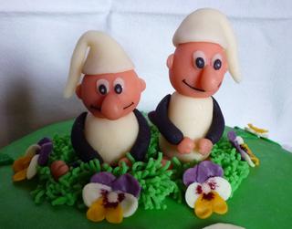 a tady můj dnes dokončený dortík (na oslavu pro tetu a strejdu alias Křemílka a Vochomůrku)