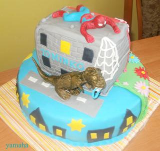 chlapec co mu isla torta ,ze ma oblubene spidermana a dinosaurov tak ci bz y sa to dalo skombinovat spolu a potom ,ye ma aj dcerka narodeniny tak ztoho vstekoho vznikla dvojita torta 😀