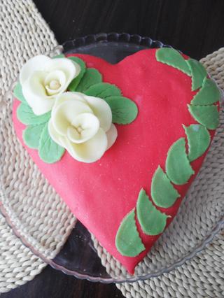 já jsem se rozhodla, že se přece nenechám porazit falešným marcipánem a pustila jsem se do něj znovu, tentokrát to šlo o moc líp, krásně se mi s ním pracovalo a pustila jsem se i do růžiček........a takhle dopadlo srdce pro moji mamku, snad se jí bude líbit 😉 😉
