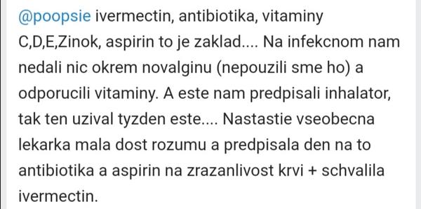 @miskamicha súhlasím s tebou... Niekto si myslí, že je to o jednej zázračnej pilulke.. Ale už sa dávno vie, že treba riediť krv... Napríklad vedela to aj Kálavská, pichala si fraxiparin.... No koľko chudákov to vedelo tiež? Keby aspoň odporúčali acylpyryn.... Ale paralen 🤦♀️už tým väčšinu opisujú.. A o tom, že zaberajú atb pomlčím 🤦♀️