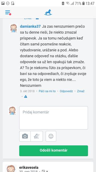 @eva112014 asi teraz konkrétne narážaš na tú pipinu co neznasa frajerovu dcéru? Lebo ona to zmazala lebo všetky ste jej ponúkli o jektivny pohľad na vec a možnosti riešenia, a nie hejtovamie nenávisť a frflanie v ktorých chcela podporiť