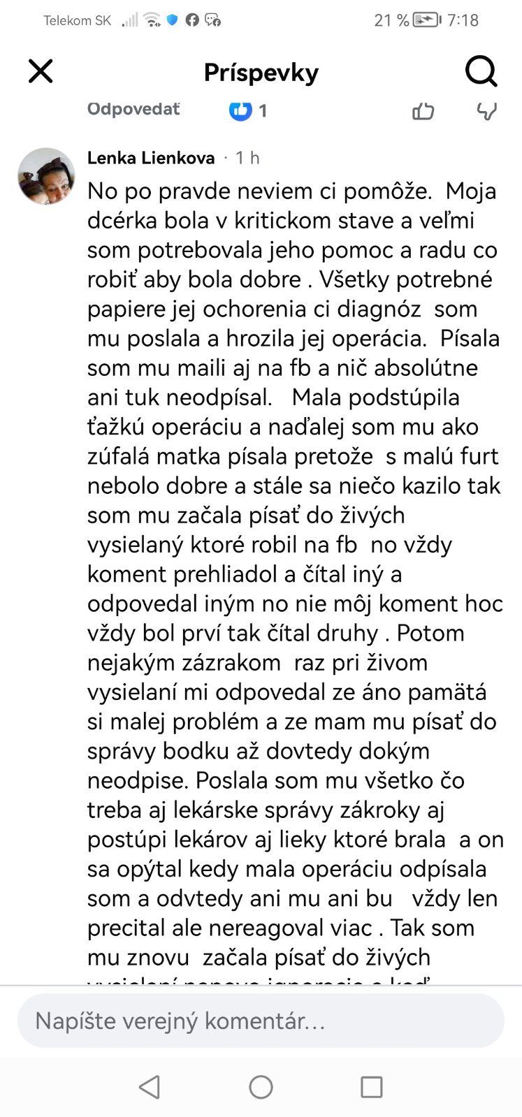 Tak podľa toho čo je na fb sú toto nulové komentáre.My pôjdeme jeho cestou.Vobec nieje taký dráhy ako sa tu píše a lieky má tiež za normálne ceny.Treba doštudovať.Ja odporucam