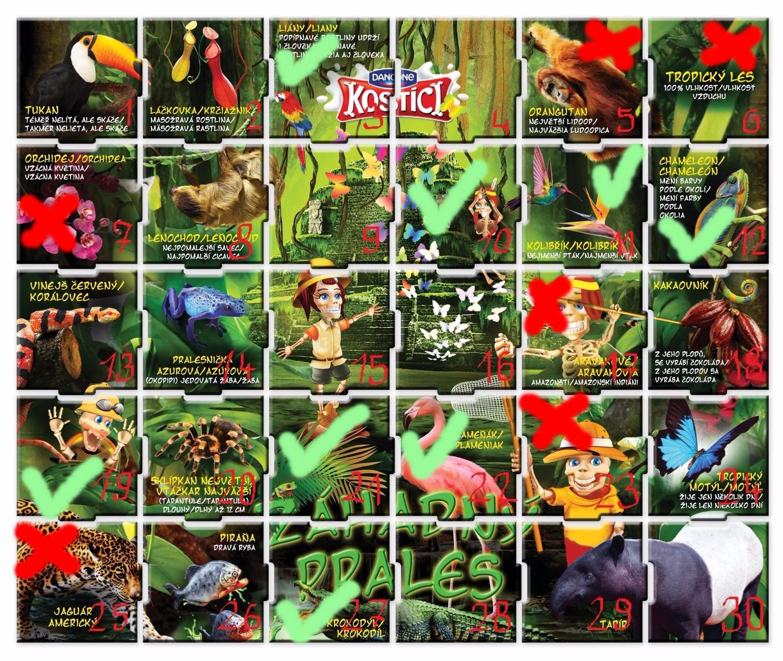 Prales magnetky ks/0,10cent-1-tukan,2-krčiažnik,5-orangutan,6-tropicky les,7-orchidea,9-indian socha,11-kolibrik,12-chameleon,15-kostik,21-Zah,24-tropicky motyl,25-jaguar,29-tapir 1čast,29 tapir 2čast